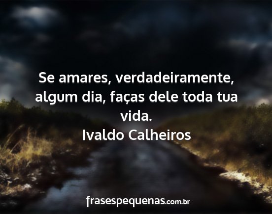 Se amares, verdadeiramente, algum dia, faças dele toda tua vida.