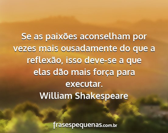 Se as paixões aconselham por vezes mais ousadamente do que a reflexão, isso deve-se a que elas dão mais força para executar.William Shakespeare