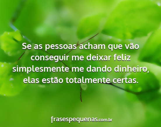 Se as pessoas acham que vão conseguir me deixar feliz simplesmente me dando dinheiro, elas estão totalmente certas.