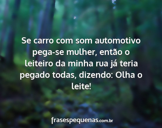 Se carro com som automotivo pega-se mulher, então o leiteiro da minha rua já teria pegado todas, dizendo: Olha o leite!