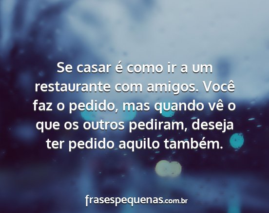 Se casar é como ir a um restaurante com amigos. Você faz o pedido, mas quando vê o que os outros pediram, deseja ter pedido aquilo também.