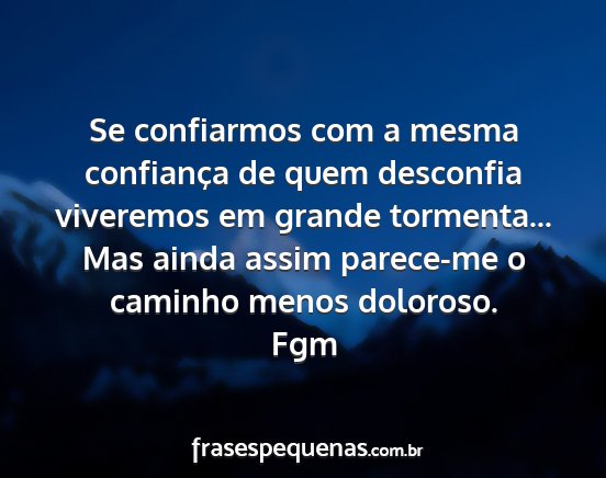 Se confiarmos com a mesma confiança de quem desconfia viveremos em grande tormenta... Mas ainda assim parece-me o caminho menos doloroso.Fgm