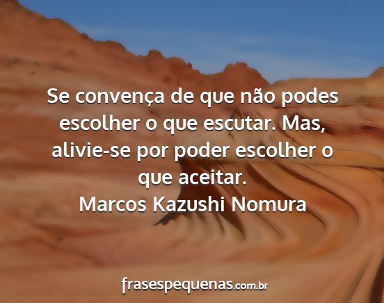 Se convença de que não podes escolher o que escutar. Mas, alivie-se por poder escolher o que aceitar.Marcos Kazushi Nomura