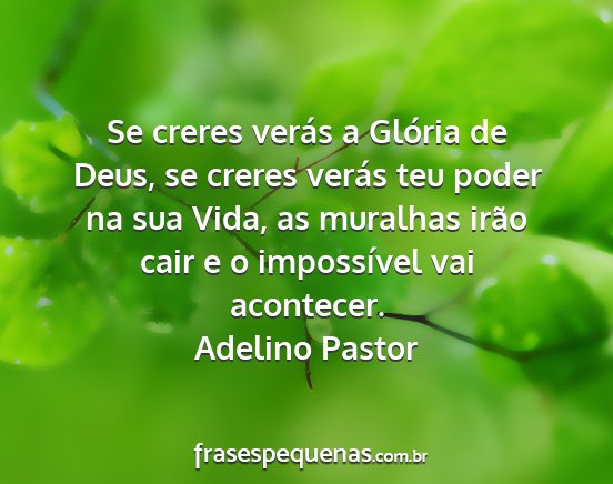 Se creres verás a Glória de Deus, se creres verás teu poder na sua Vida, as muralhas irão cair e o impossível vai acontecer.Adelino Pastor
