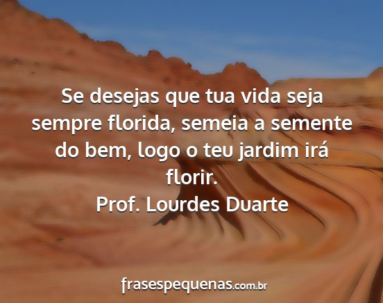 Se desejas que tua vida seja sempre florida, semeia a semente do bem, logo o teu jardim irá florir.Prof. Lourdes Duarte