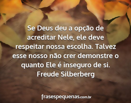 Se Deus deu a opção de acreditar Nele, ele deve respeitar nossa escolha. Talvez esse nosso não crer demonstre o quanto Ele é inseguro de si.Freude Silberberg