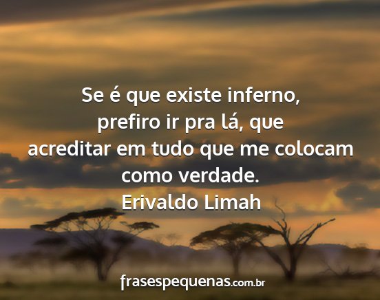 Se é que existe inferno, prefiro ir pra lá, que acreditar em tudo que me colocam como verdade.Erivaldo Limah