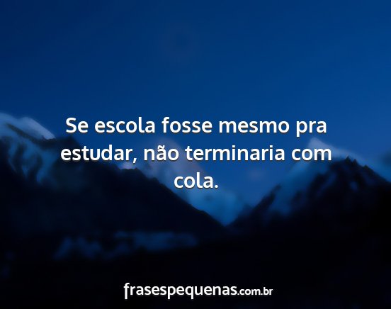 Se escola fosse mesmo pra estudar, não terminaria com cola.