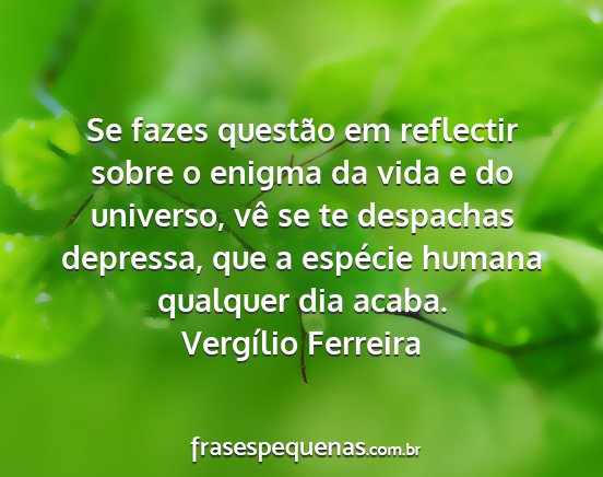 Se fazes questão em reflectir sobre o enigma da vida e do universo, vê se te despachas depressa, que a espécie humana qualquer dia acaba.Vergílio Ferreira