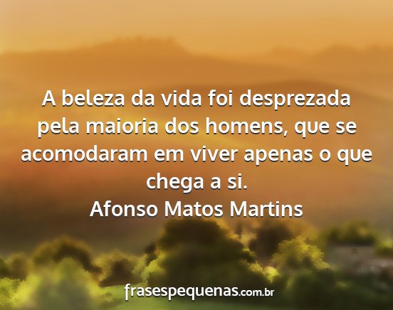 A beleza da vida foi desprezada pela maioria dos homens, que se acomodaram em viver apenas o que chega a si.Afonso Matos Martins