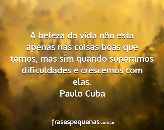 A beleza da vida não esta apenas nas coisas boas que temos, mas sim quando superamos dificuldades e crescemos com elas.Paulo Cuba