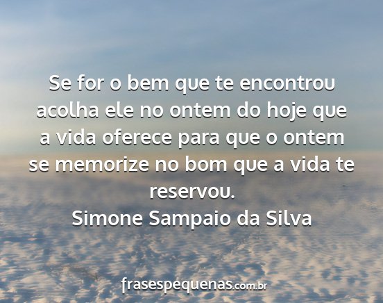 Se for o bem que te encontrou acolha ele no ontem do hoje que a vida oferece para que o ontem se memorize no bom que a vida te reservou.Simone Sampaio da Silva