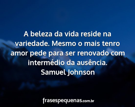A beleza da vida reside na variedade. Mesmo o mais tenro amor pede para ser renovado com intermédio da ausência.Samuel Johnson