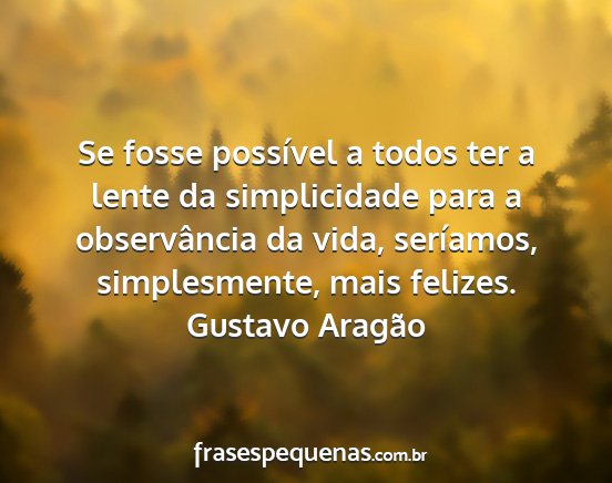 Se fosse possível a todos ter a lente da simplicidade para a observância da vida, seríamos, simplesmente, mais felizes.Gustavo Aragão