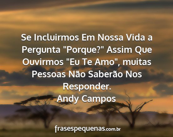 Se Incluirmos Em Nossa Vida a Pergunta "Porque?" Assim Que Ouvirmos "Eu Te Amo", muitas Pessoas Não Saberão Nos Responder.Andy Campos