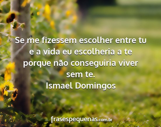 Se me fizessem escolher entre tu e a vida eu escolheria a te porque não conseguiria viver sem te.Ismael Domingos
