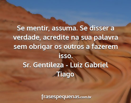 Se mentir, assuma. Se disser a verdade, acredite na sua palavra sem obrigar os outros a fazerem isso.Sr. Gentileza - Luiz Gabriel Tiago