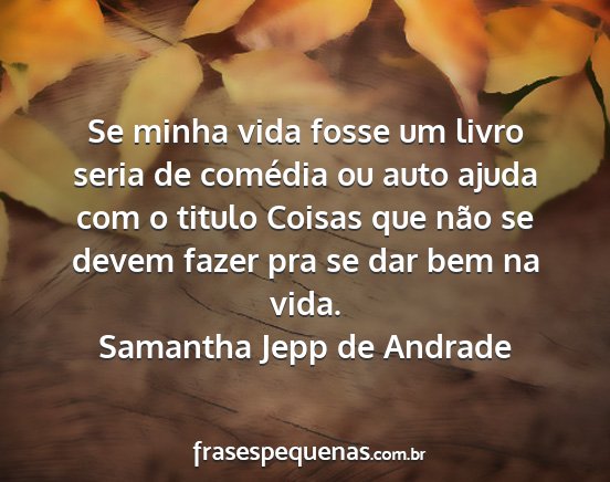 Se minha vida fosse um livro seria de comédia ou auto ajuda com o titulo Coisas que não se devem fazer pra se dar bem na vida.Samantha Jepp de Andrade