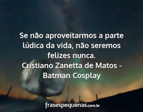 Se não aproveitarmos a parte lúdica da vida, não seremos felizes nunca.Cristiano Zanetta de Matos - Batman Cosplay