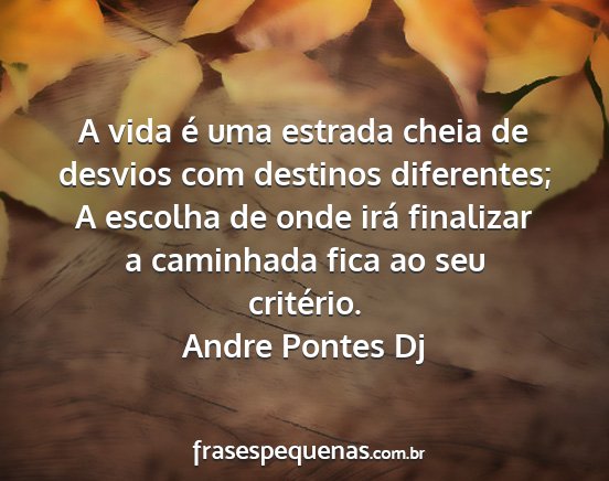 A vida é uma estrada cheia de desvios com destinos diferentes; A escolha de onde irá finalizar a caminhada fica ao seu critério.Andre Pontes Dj