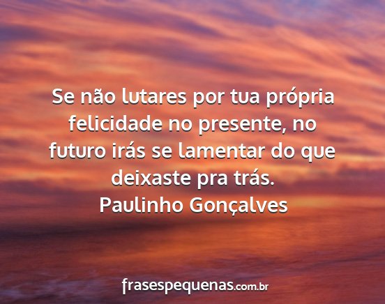 Se não lutares por tua própria felicidade no presente, no futuro irás se lamentar do que deixaste pra trás.Paulinho Gonçalves