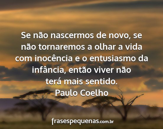 Se não nascermos de novo, se não tornaremos a olhar a vida com inocência e o entusiasmo da infância, então viver não terá mais sentido.Paulo Coelho