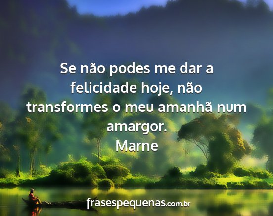 Se não podes me dar a felicidade hoje, não transformes o meu amanhã num amargor.