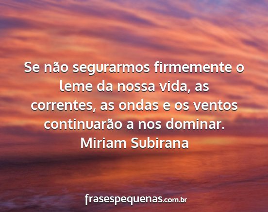 Se não segurarmos firmemente o leme da nossa vida, as correntes, as ondas e os ventos continuarão a nos dominar.Miriam Subirana