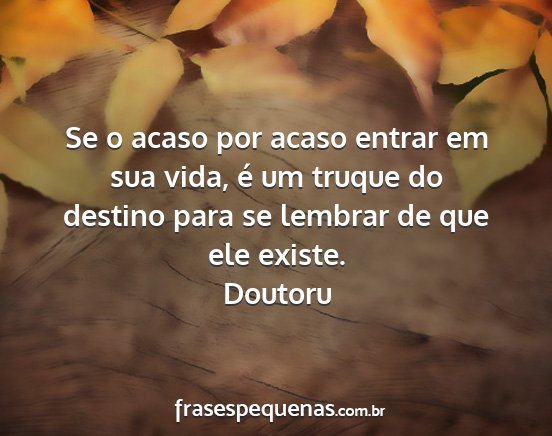 Se o acaso por acaso entrar em sua vida, é um truque do destino para se lembrar de que ele existe.Doutoru