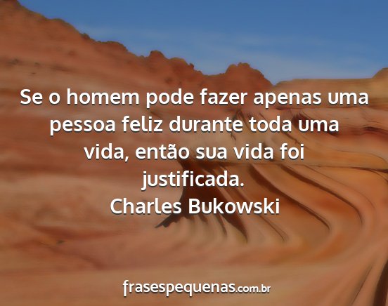 Se o homem pode fazer apenas uma pessoa feliz durante toda uma vida, então sua vida foi justificada.Charles Bukowski