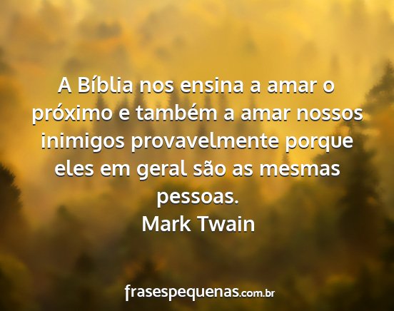 A Bíblia nos ensina a amar o próximo e também a amar nossos inimigos provavelmente porque eles em geral são as mesmas pessoas.Mark Twain