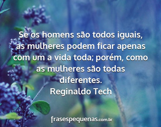Se os homens são todos iguais, as mulheres podem ficar apenas com um a vida toda; porém, como as mulheres são todas diferentes.Reginaldo Tech