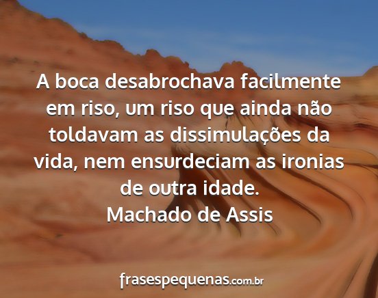 A boca desabrochava facilmente em riso, um riso que ainda não toldavam as dissimulações da vida, nem ensurdeciam as ironias de outra idade.Machado de Assis