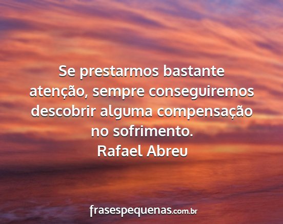 Se prestarmos bastante atenção, sempre conseguiremos descobrir alguma compensação no sofrimento.Rafael Abreu