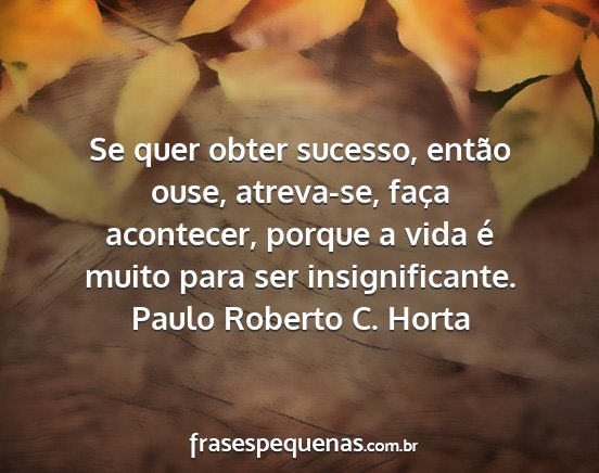 Se quer obter sucesso, então ouse, atreva-se, faça acontecer, porque a vida é muito para ser insignificante.Paulo Roberto C. Horta