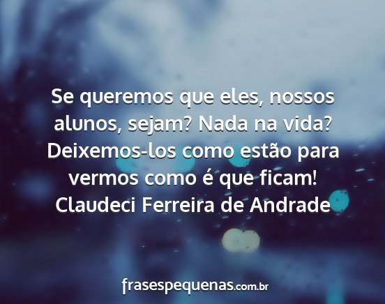 Se queremos que eles, nossos alunos, sejam? Nada na vida? Deixemos-los como estão para vermos como é que ficam!Claudeci Ferreira de Andrade
