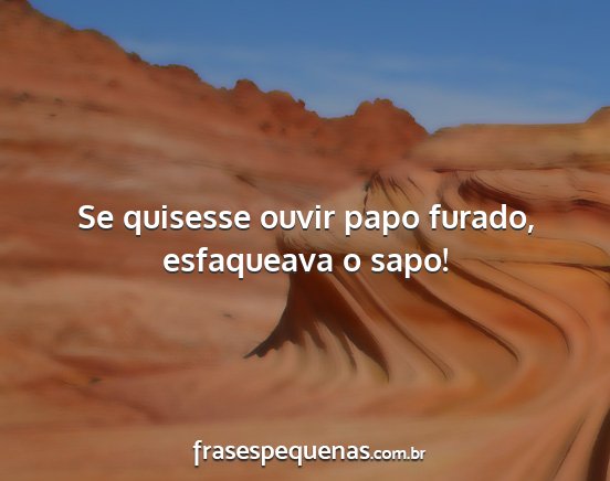 Se quisesse ouvir papo furado, esfaqueava o sapo!