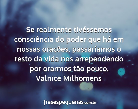 Se realmente tivéssemos consciência do poder que há em nossas orações, passaríamos o resto da vida nos arrependendo por orarmos tão pouco.Valnice Milhomens