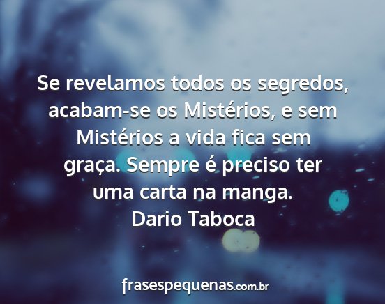 Se revelamos todos os segredos, acabam-se os Mistérios, e sem Mistérios a vida fica sem graça. Sempre é preciso ter uma carta na manga.Dario Taboca