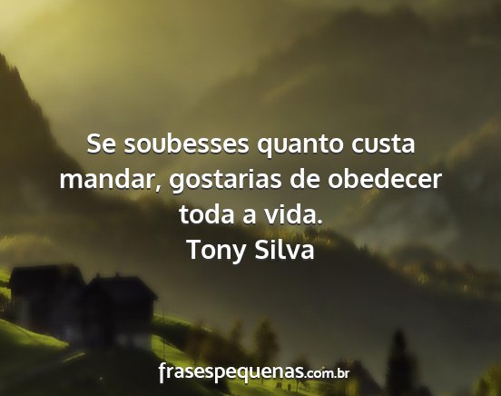 Se soubesses quanto custa mandar, gostarias de obedecer toda a vida.