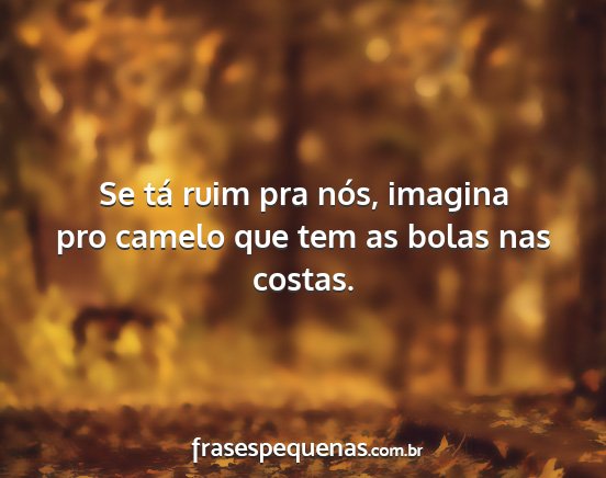 Se tá ruim pra nós, imagina pro camelo que tem as bolas nas costas.