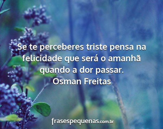Se te perceberes triste pensa na felicidade que será o amanhã quando a dor passar.