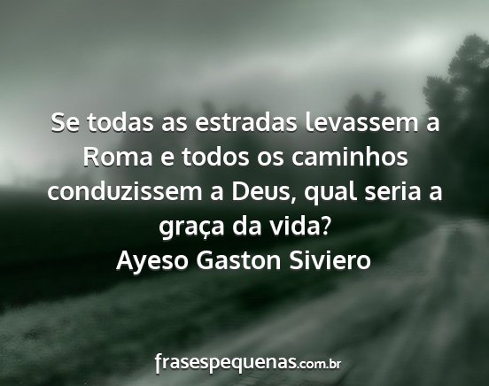 Se todas as estradas levassem a Roma e todos os caminhos conduzissem a Deus, qual seria a graça da vida?Ayeso Gaston Siviero