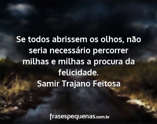 Se todos abrissem os olhos, não seria necessário percorrer milhas e milhas a procura da felicidade.Samir Trajano Feitosa