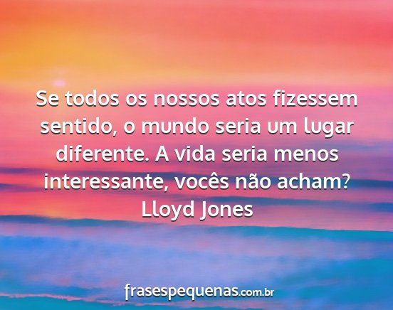 Se todos os nossos atos fizessem sentido, o mundo seria um lugar diferente. A vida seria menos interessante, vocês não acham?Lloyd Jones