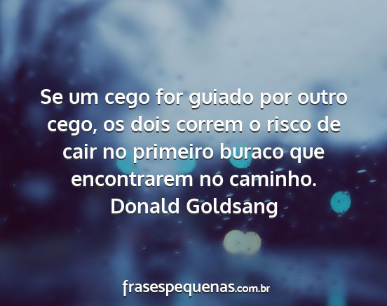 Se um cego for guiado por outro cego, os dois correm o risco de cair no primeiro buraco que encontrarem no caminho.Donald Goldsang