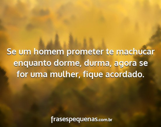 Se um homem prometer te machucar enquanto dorme, durma, agora se for uma mulher, fique acordado.