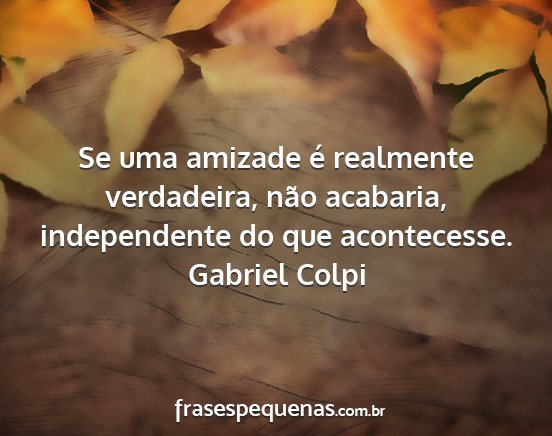 Se uma amizade é realmente verdadeira, não acabaria, independente do que acontecesse.