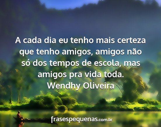 A cada dia eu tenho mais certeza que tenho amigos, amigos não só dos tempos de escola, mas amigos pra vida toda.Wendhy Oliveira