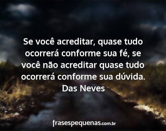 Se você acreditar, quase tudo ocorrerá conforme sua fé, se você não acreditar quase tudo ocorrerá conforme sua dúvida.Das Neves